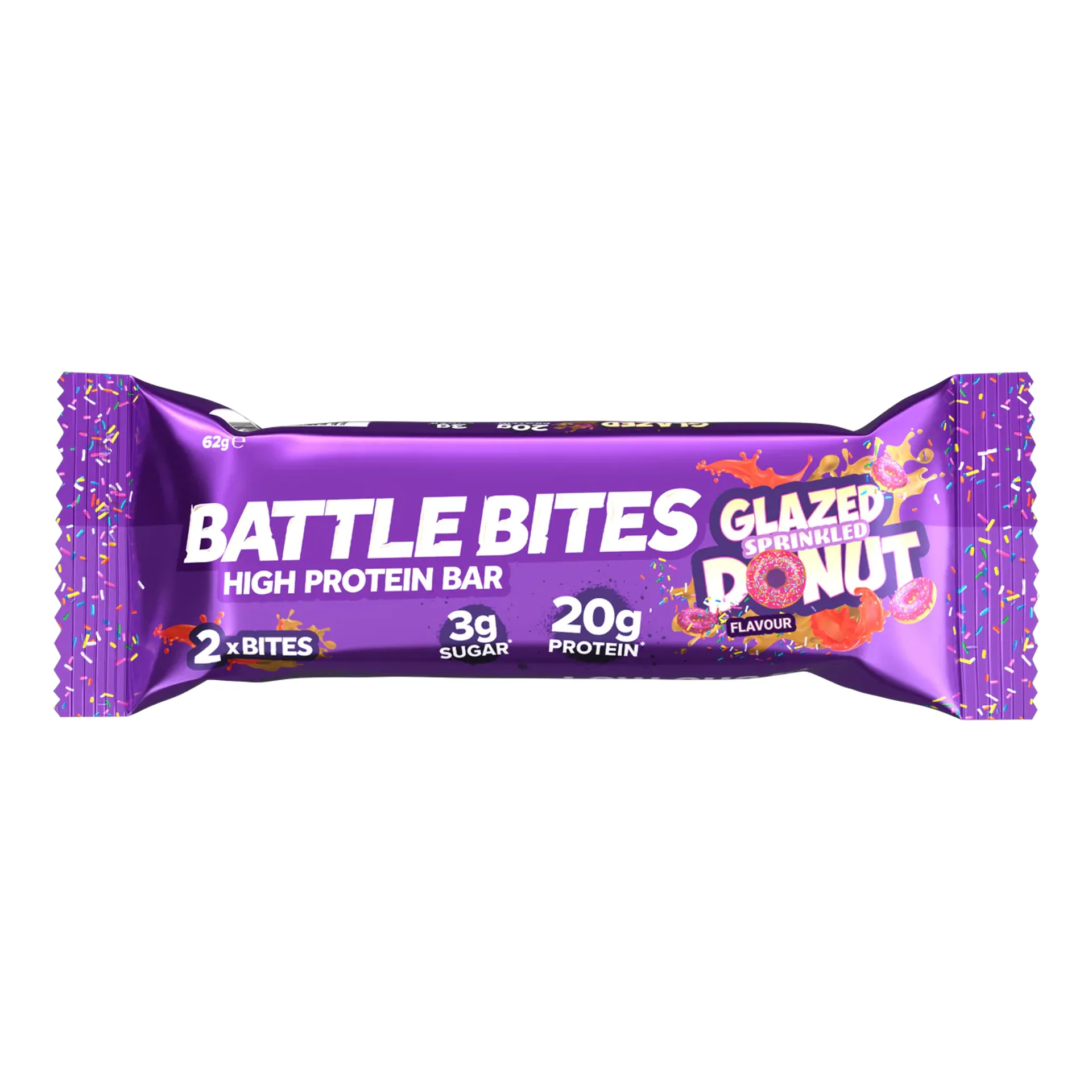 Question(s) asked regarding Battle Bites High Protein Bar - 1 x 62g Bar Glazed Sprinkled Donut